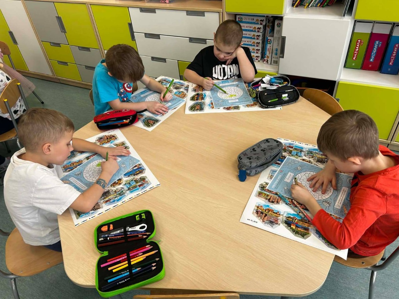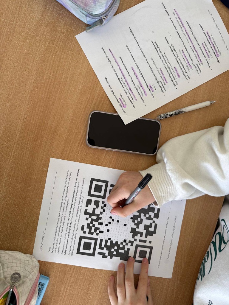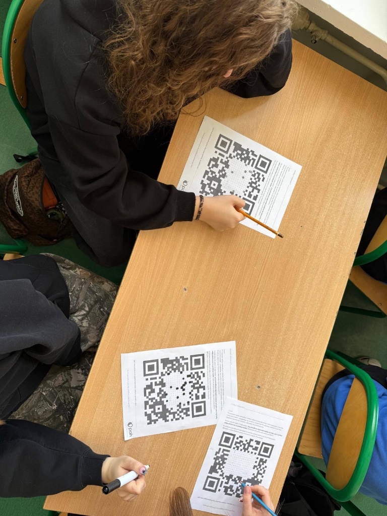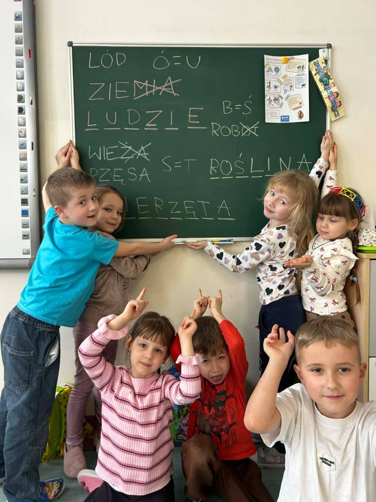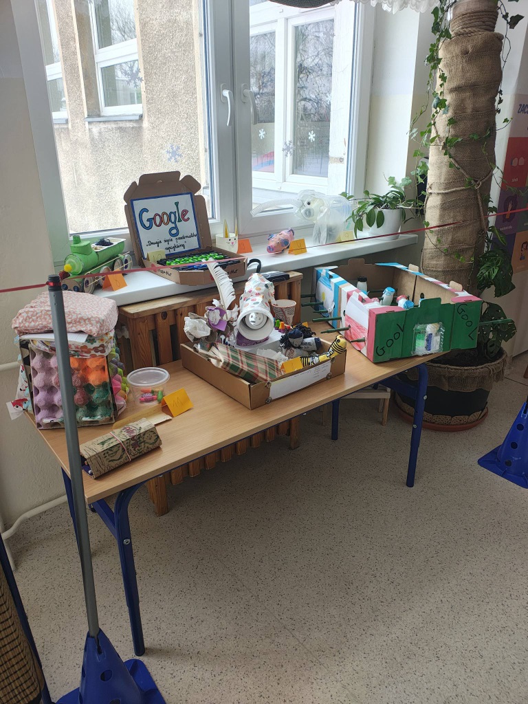 Młodsze klasy otrzymały karty pracy, a starsze brały udział w “mini grze terenowej” na korytarzu szkolnym.