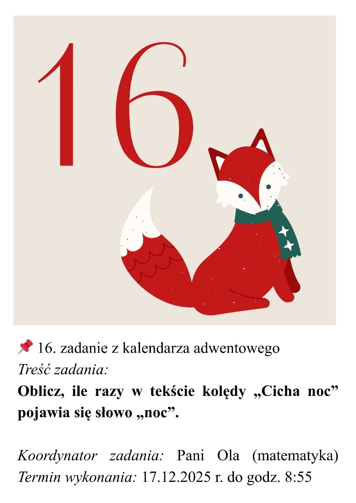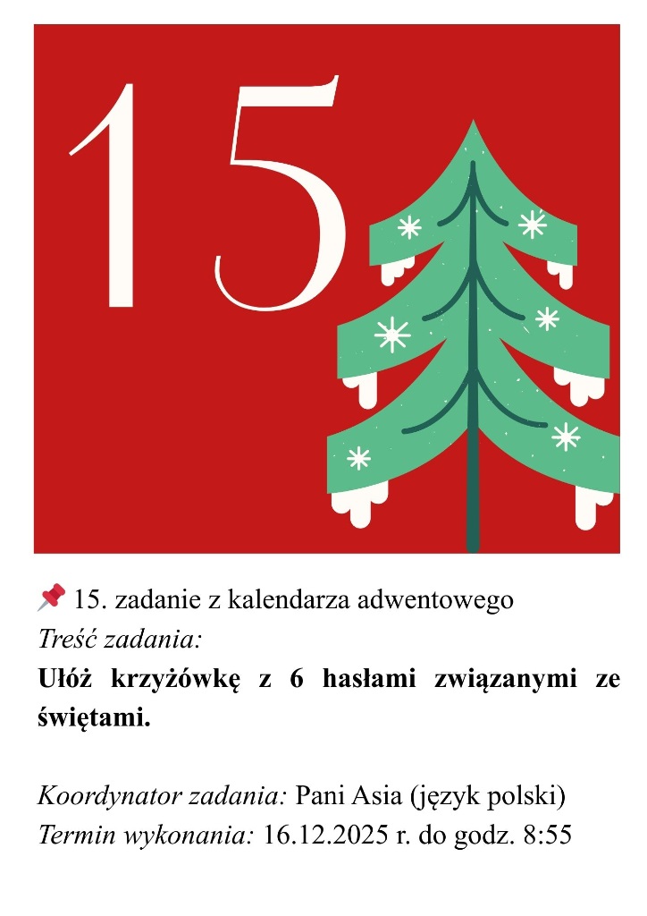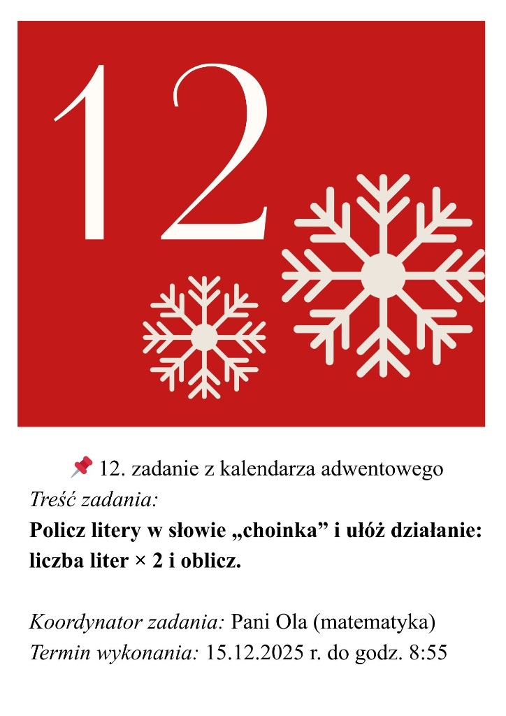 Każdego dnia aż do Świąt Bożego Narodzenia czekać będą na Was nowe zadania i niespodzianki – tym razem w formie świątecznych wyzwań z matematyki i języka polskiego.