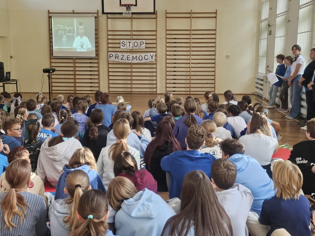 1 października w przeddzień Międzynarodowego Dnia Bez Przemocy zorganizowaliśmy spotkanie z uczniami, aby przypomnieć im, gdzie można zwracać się o pomoc i jak radzić sobie w trudnych sytuacjach. Symbolem dzisiejszego dnia był kolor niebieski - jak niebieska infolinia oferująca pomoc dla ofiar przemocy.