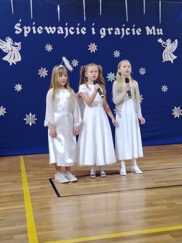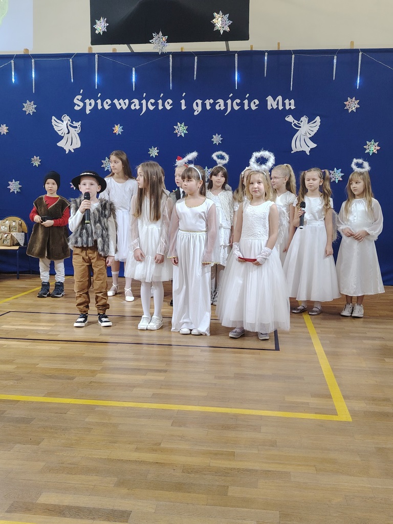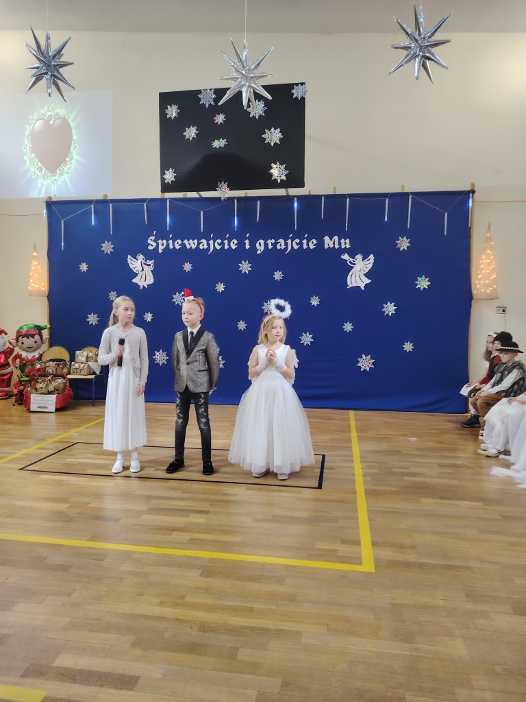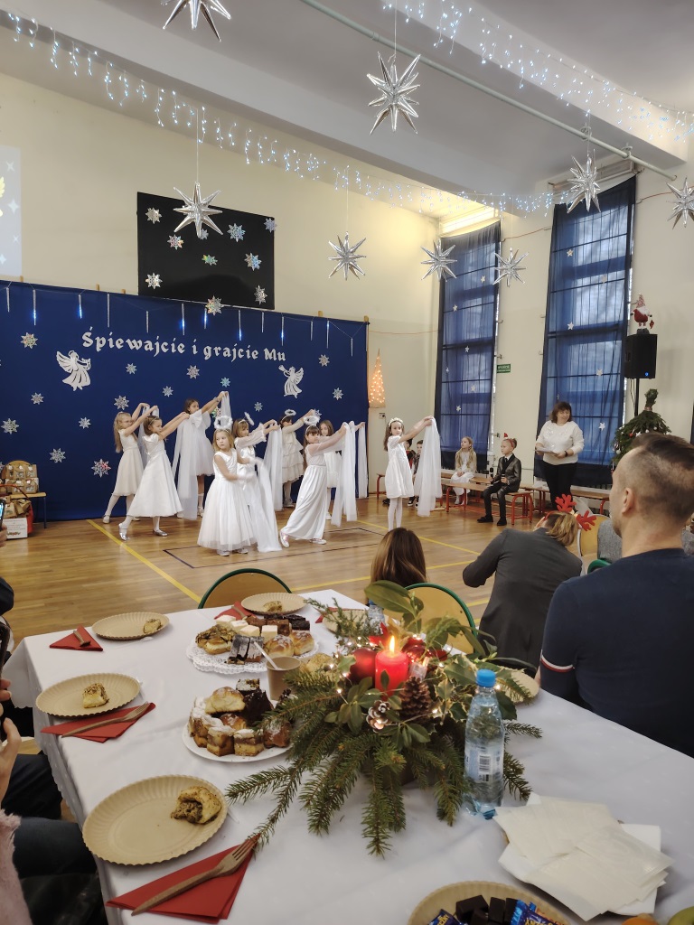 Spotkanie wigilijne rozpoczęło się od koncertu kolęd przygotowanego przez uczniów klasy 1-3 i nauczycieli: pani. Beaty Galant, pani Ewy Piepiory oraz pani Magdaleny Tutaj.
