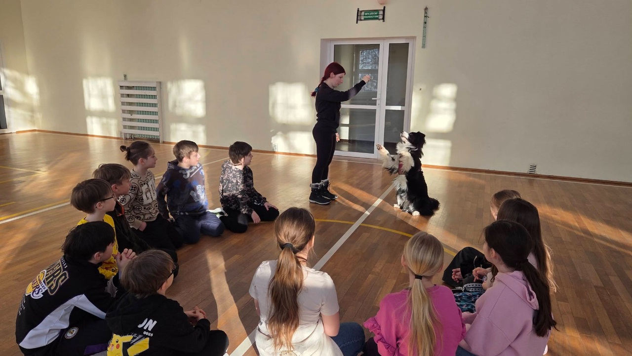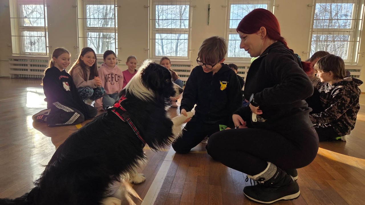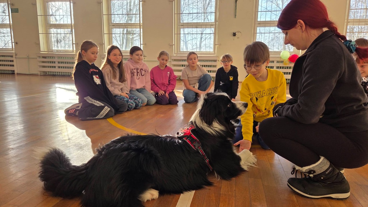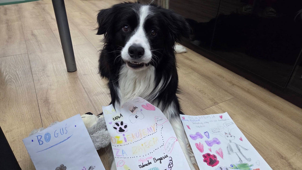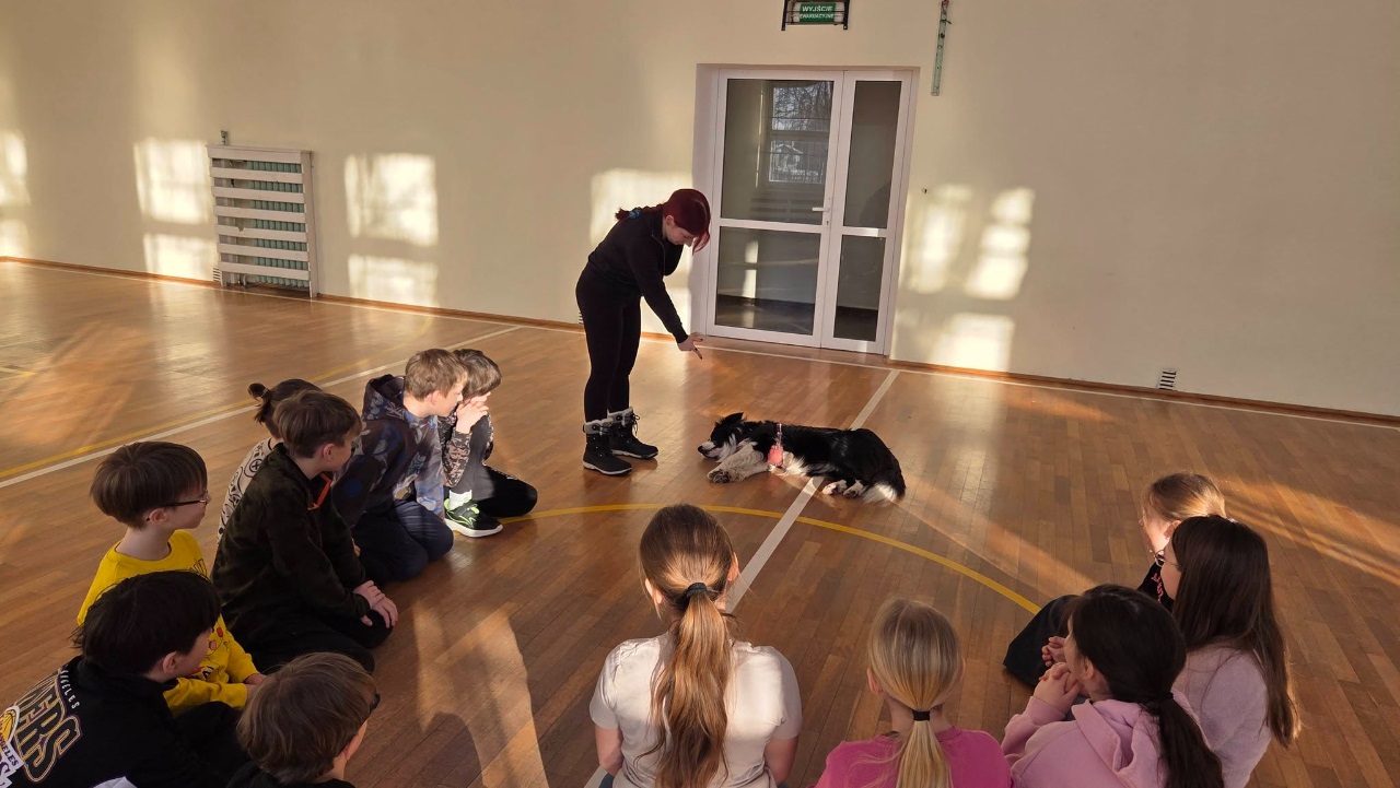 16 lutego klasę 3B odwiedził wyjątkowy gość - pies terapeutyczny Boguś wraz z dogoterapeutką, panią Agnieszką. Podczas zajęć dowiedzieliśmy się, jak prawidłowo opiekować się psem oraz jak ważna jest cierpliwość, spokój i odpowiedzialność w kontakcie ze zwierzętami.