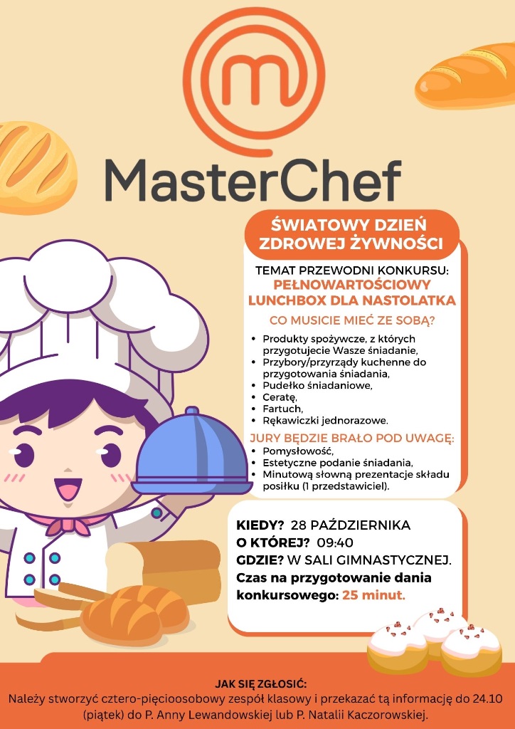 Zapraszamy do udziału w konkursie MasterChef - Szkoła Podstawowa nr 59 im. I Dywizji Pancernej gen. Stanisława Maczka