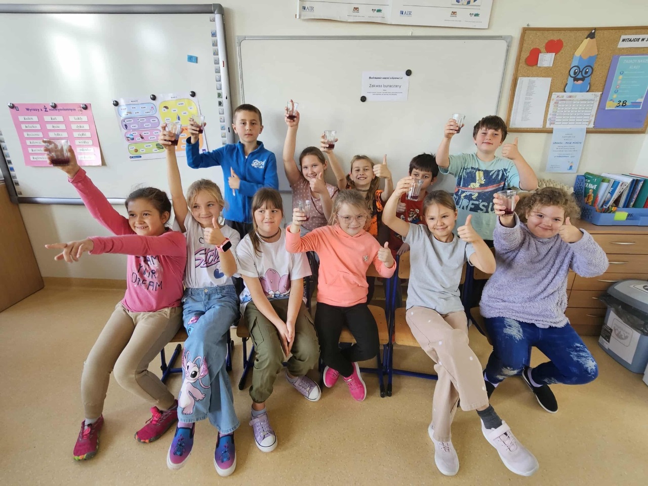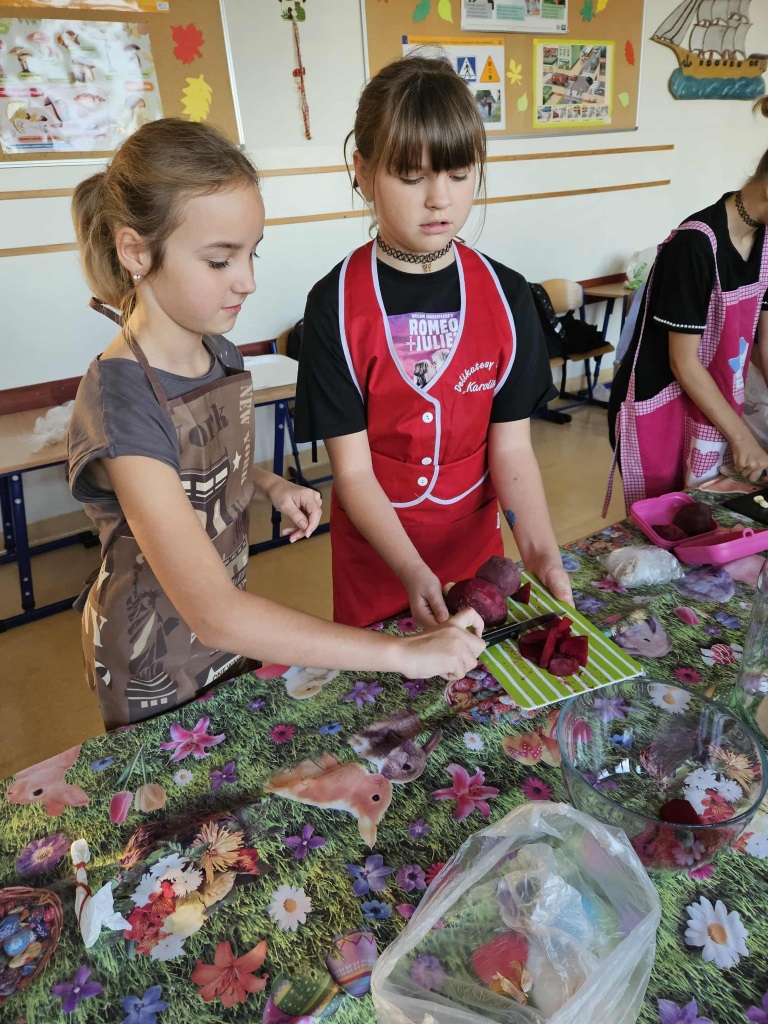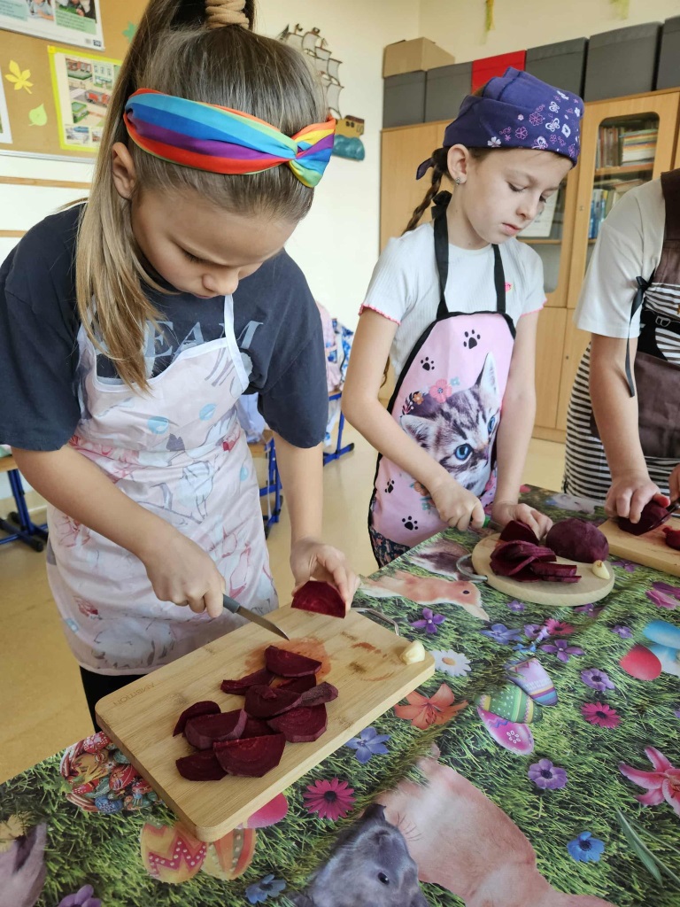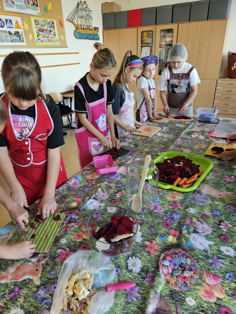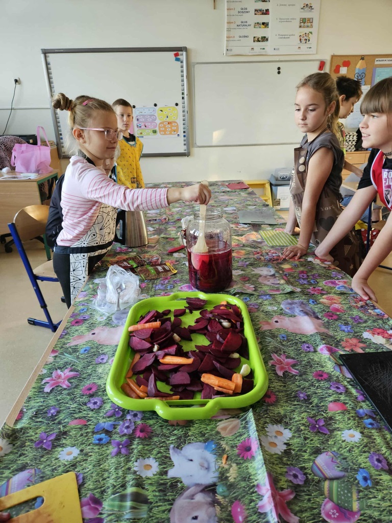 W naszej klasie 3 zrobiło się bardzo zdrowo i… smakowicie! W zeszłym tygodniu wspólnie przygotowaliśmy zakwas z buraków – dzieci kroiły buraki, układały je w sł
