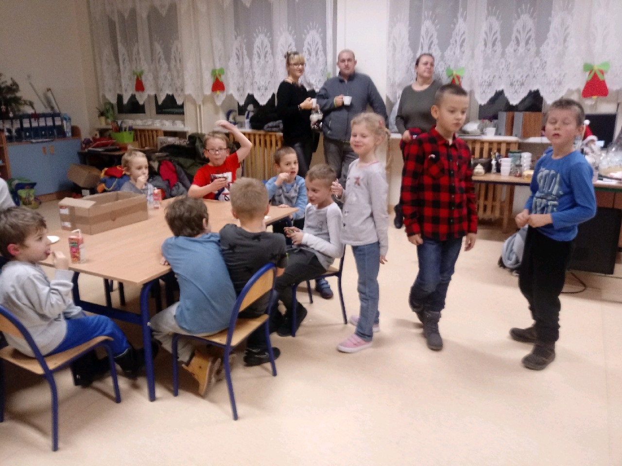 13 grudnia - świąteczne, rodzinne popołudnie w szkole. Był kiermasz i Koncert Kolęd. Ten dzień my obchodziliśmy po raz pierwszy i bardzo nam się podobało. Jeszcze się zastanawiamy nad tym - co zrobimy z zarobionymi na kiermaszu pieniążkami.