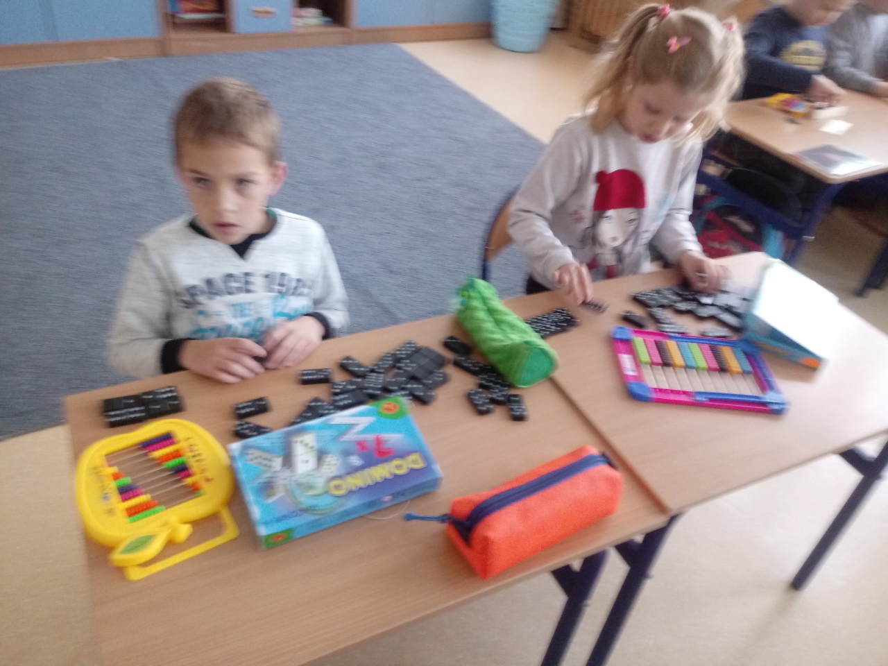 Dzisiaj poznawaliśmy tajniki liczb poprzez zabawy z dominem. Była i nauka i zabawa.